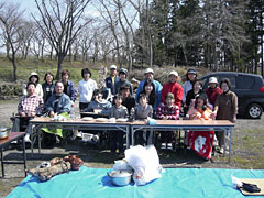 副理事長の蛯名さんの乾杯で 青空のもと毎年恒例の花見の宴がはじまりました。 おいしい料理とおいしいお酒を持ち寄り、花が咲いていないかったのが残念でしたが、参加した人たちは僕も含め楽しんでいたように見受けられました。でも、サクラじゃなくて皆さんの笑顔が花のように咲いていました。 (田中)